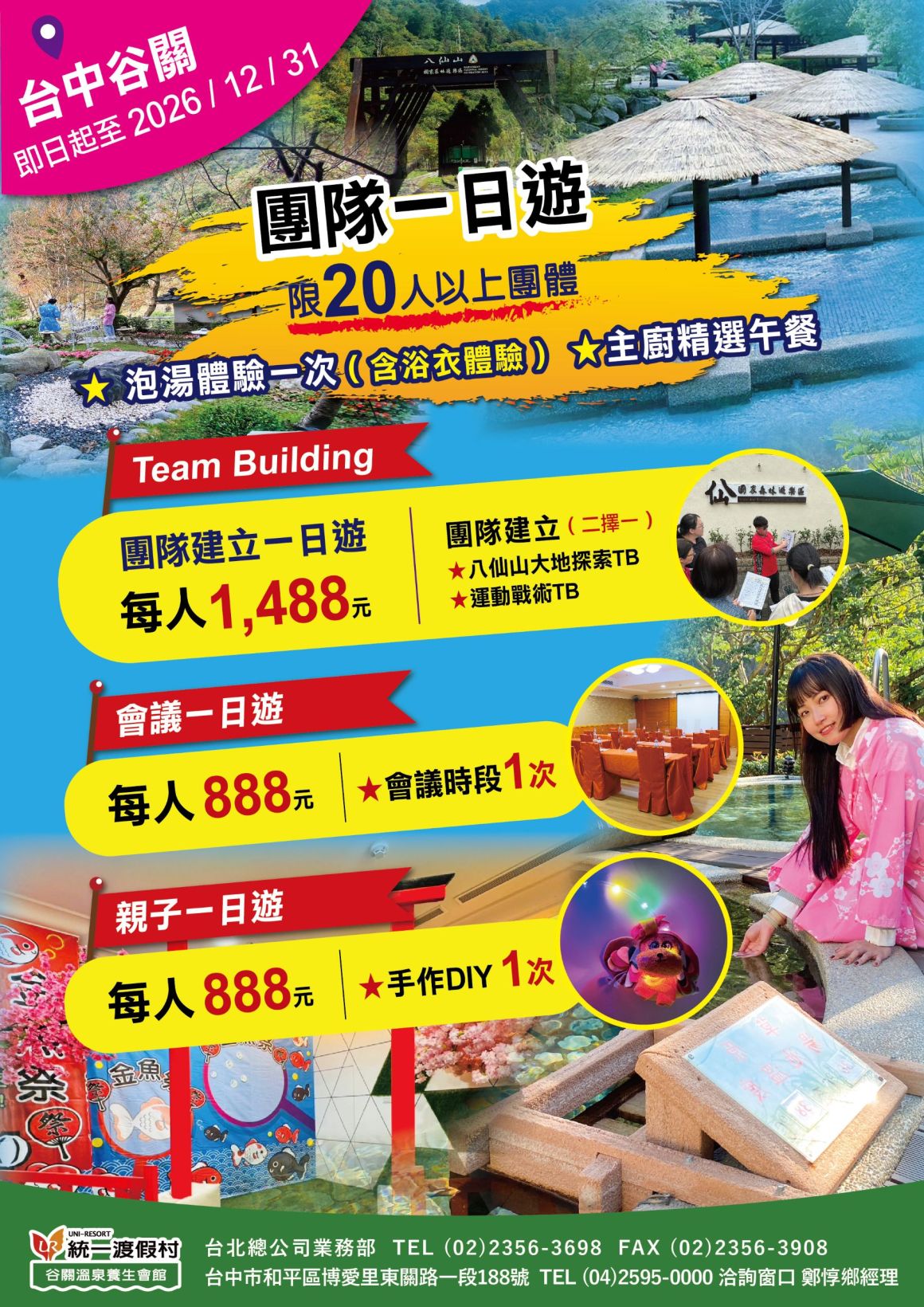統一渡假村【五月連假】訂房攻略!入住飯店參加豐富精彩連假限定活動,食玩宿全包假期,盡情放電一整天。統一谷關【幸福宅急便】專屬活動,春暖花開之際泡美湯,感受谷關的慢步調。在旅程中收集幸福療癒身心,將那些美好的點點滴滴記錄成文字,豐富假期體驗!暢玩園區設施及一連串活動,連假出遊最放電又有趣的行程!連假住宿立即訂→